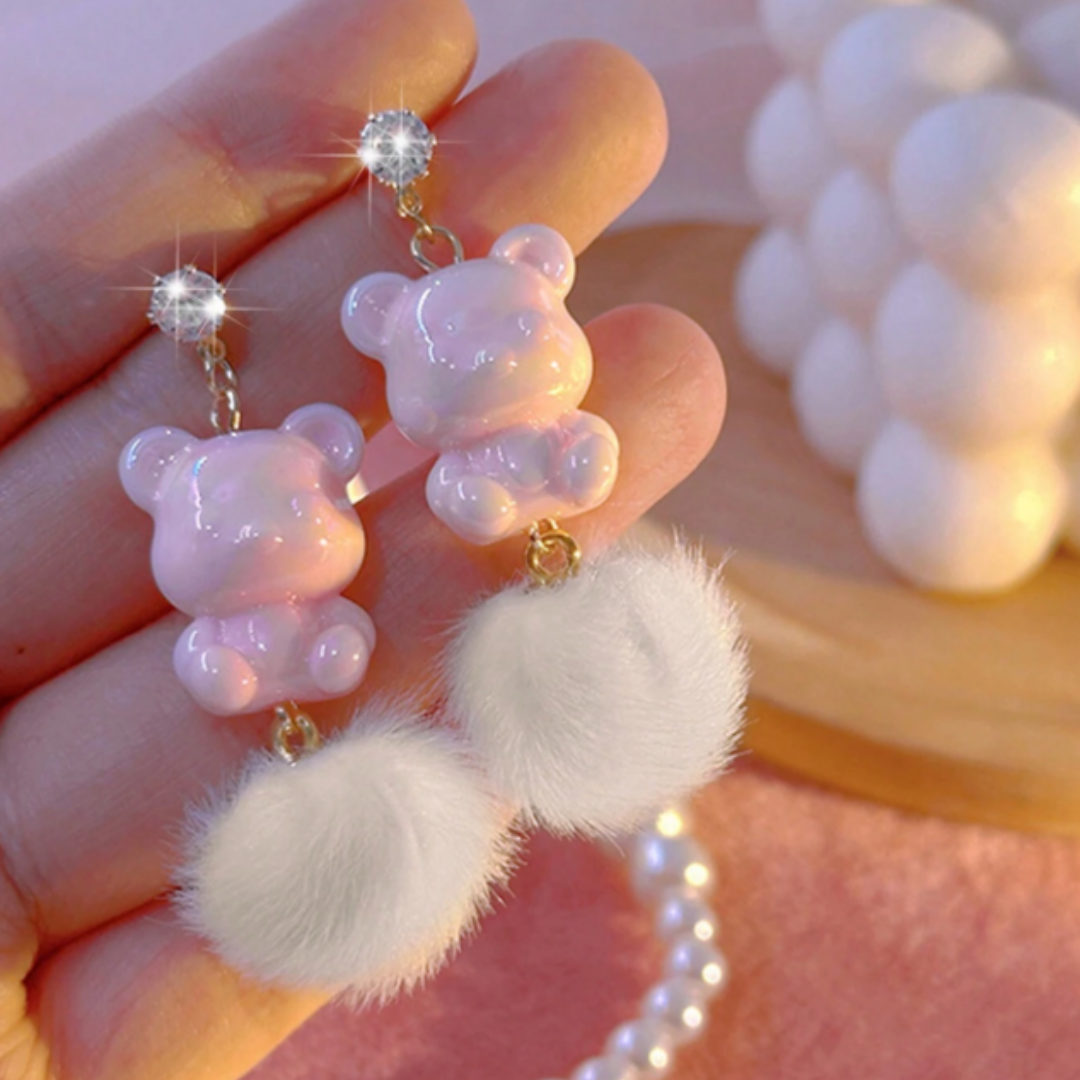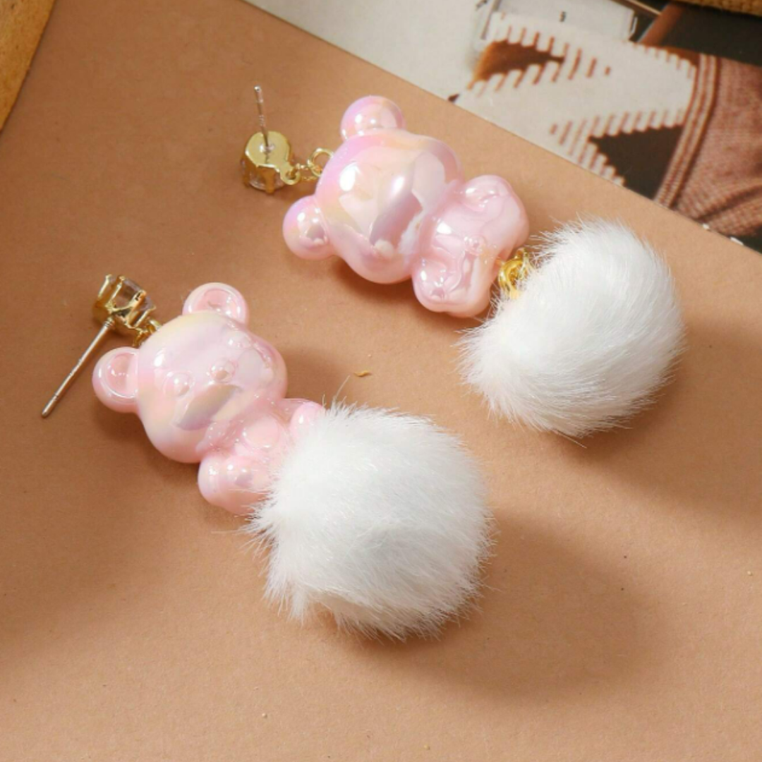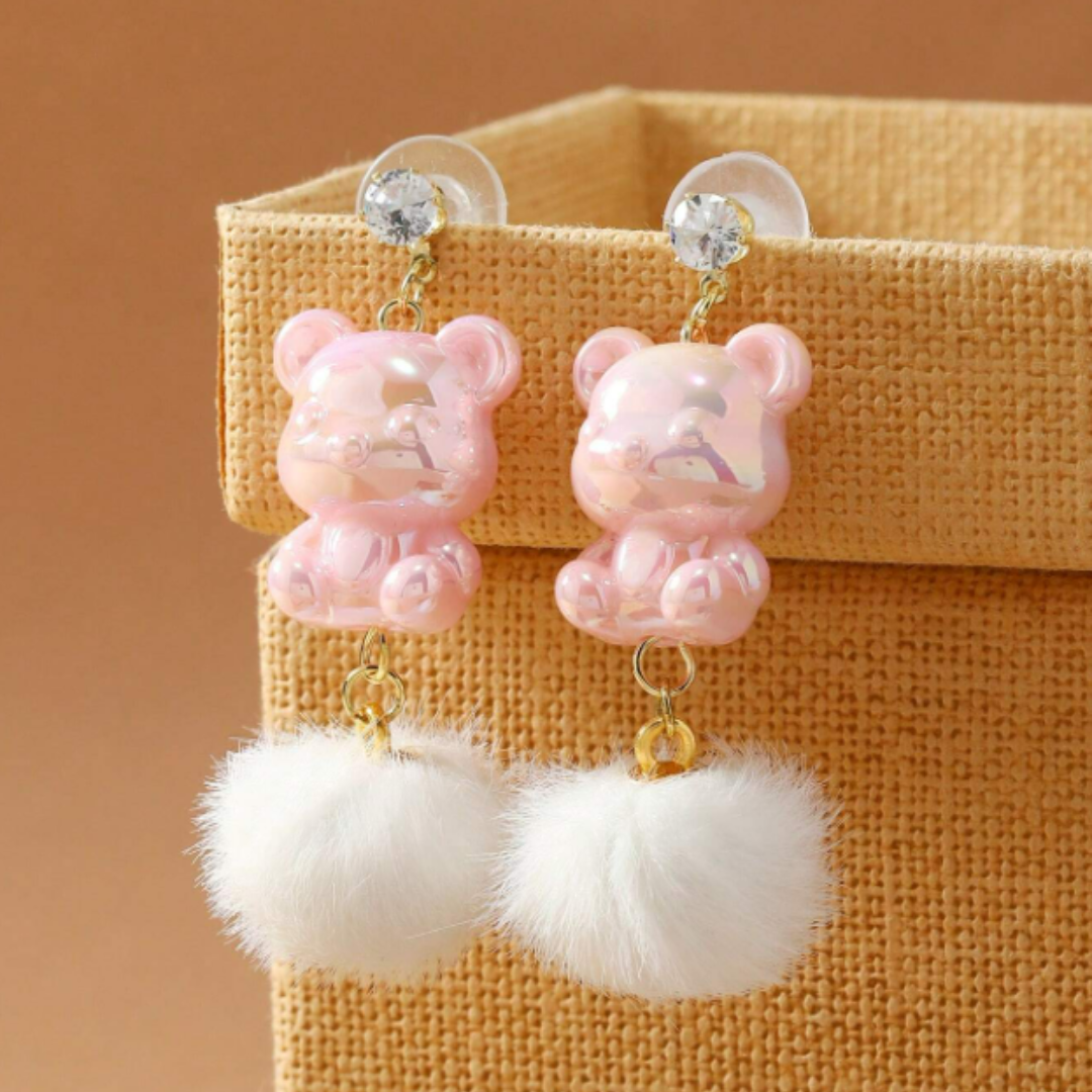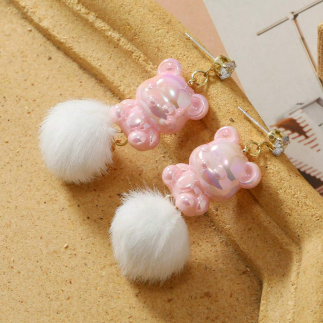 Irresistible cuteness alert! These pink bear with furry ball earrings are the perfect accessory for anyone who loves adorable animals and quirky style!